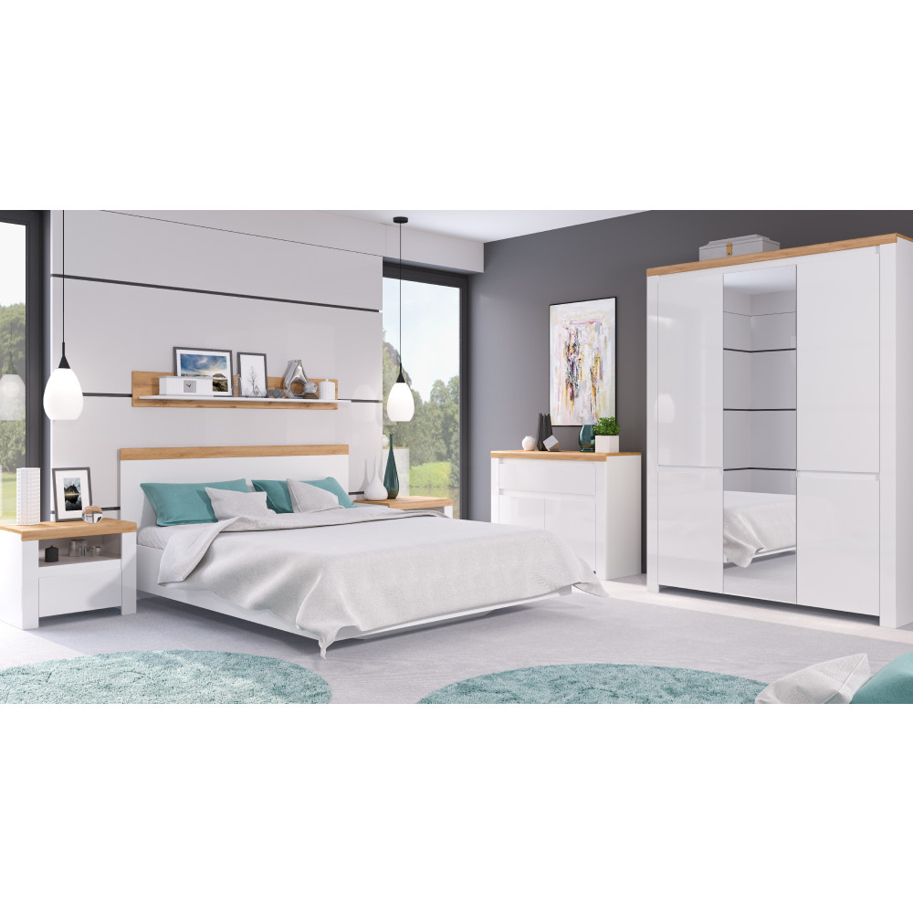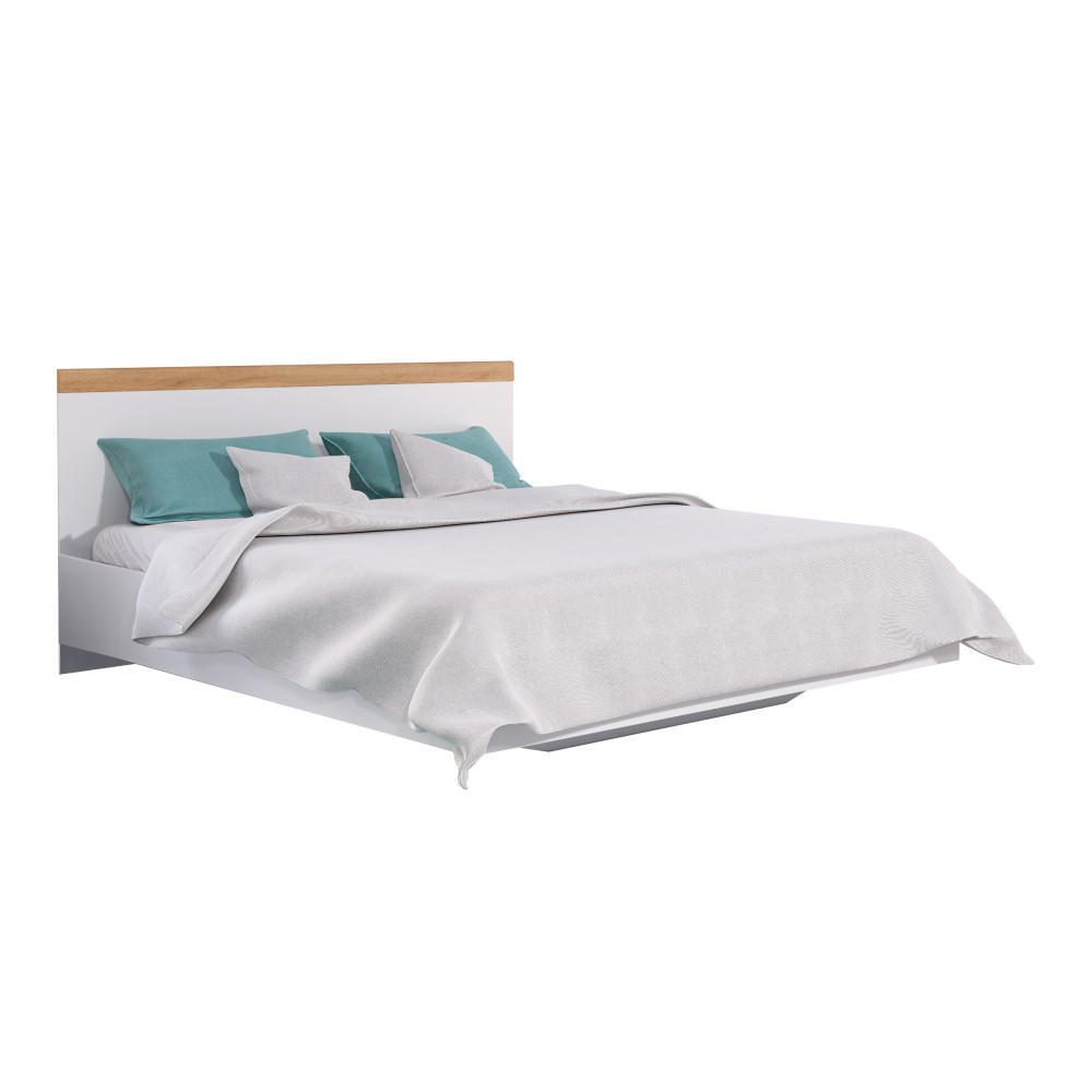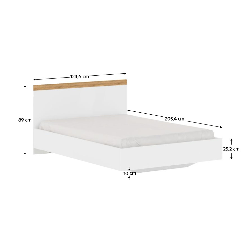 Ez a VILGO ágy 120x200 cm-es alvófelülettel rendelkezik, amely ideális választás kisebb hálószobákba. A fehér és wotan tölgy színek elegáns kombinációja modern megjelenést biztosít. Tartós laminált DTD-ből készült, ABS élekkel, ami hosszú élettartamot garantál. Teherbírása 90 kg, az ajánlott matracmagasság pedig minimum 9 cm.