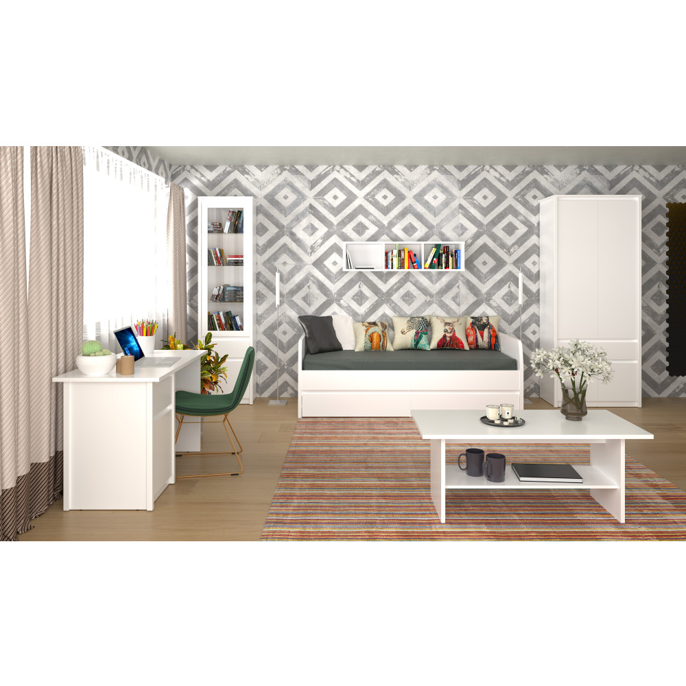 Ez a modern, fehér színű ERODIN ágy tökéletes választás bármely hálószobába. Két praktikus fiókkal rendelkezik, amelyek ideálisak ágynemű vagy egyéb tárgyak tárolására. Az ágy tartós laminált DTD anyagból készült, és 90x200 cm-es matracokhoz tervezték. A stabil, műanyag lábak biztosítják a megfelelő teherbírást, míg az ágy elegáns megjelenése stílusossá varázsolja a szobát.