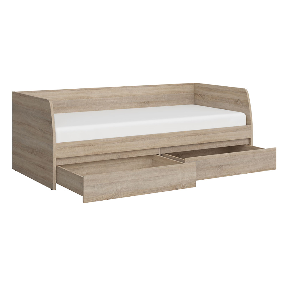 A NORTY TYP 28 ágy modern formatervezésével és praktikus kialakításával ideális választás a hálószobába. Sonoma tölgy színű, laminált DTD anyagból készült, amely nemcsak esztétikus, hanem tartós is. Az ágy alvófelülete 90x200 cm, két tágas fiókkal rendelkezik, amelyek extra tárolóhelyet biztosítanak.