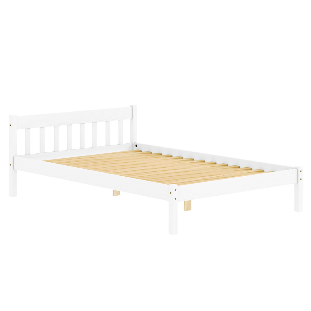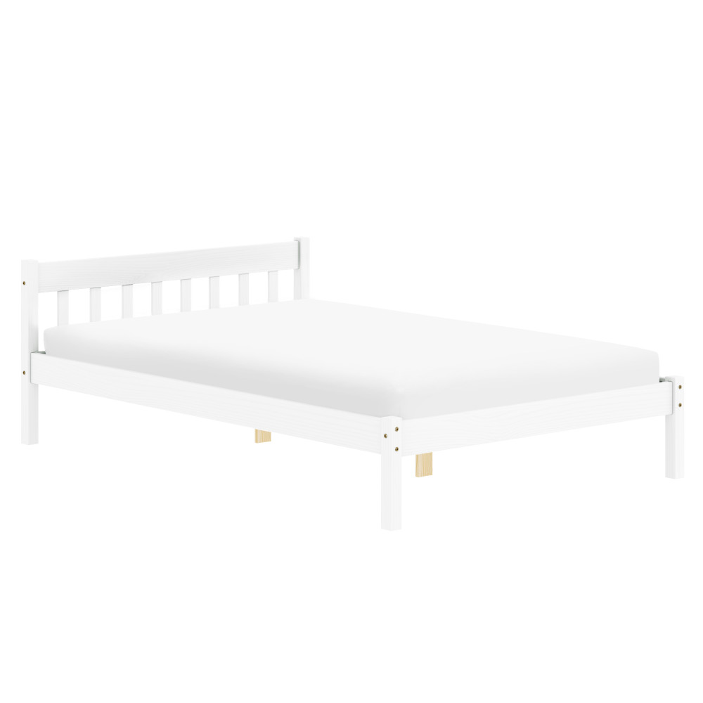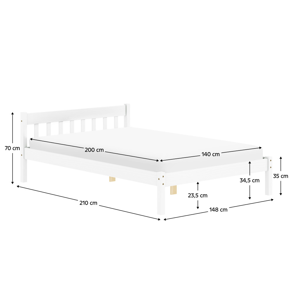 Fedezze fel a MAVIL ágyat, amely a skandináv minimalizmus és a természetes anyagok találkozását testesíti meg. A fehérre festett, masszív fenyőfa szerkezet stílusos és tartós megoldást kínál hálószobájának. 140x200 cm-es alvófelületével és 110 kg teherbírásával ideális választás mindennapi használatra.