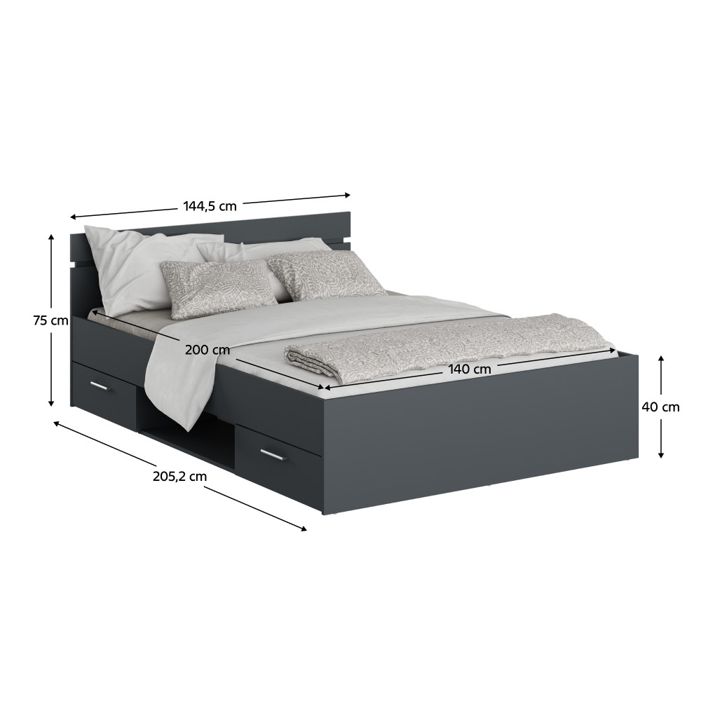 A MICHIGAN NEW ágykeret elegáns és modern megjelenést kölcsönöz hálószobájának. Ez a 140x200 cm-es ágykeret grafit színben érhető el, amely bármely belső tér stílusos kiegészítője lehet. Két praktikus fiókja ágynemű tárolására is alkalmas, így a helytakarékosság jegyében készült.