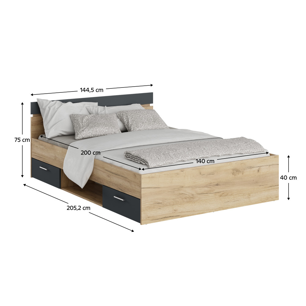 Ez a MICHIGAN NEW ágykeret egy tökéletes választás a hálószobájába. A tölgy artisan és grafit színek kifinomult kontrasztot alkotnak, miközben a 140x200 cm-es fekvőfelület kényelmes alvást biztosít. Az ágykeret két fiókos ágyneműtartóval rendelkezik, amelyek mindkét oldalról szerelhetők.