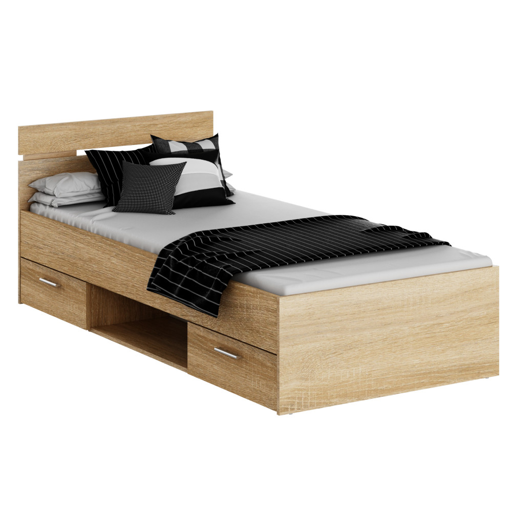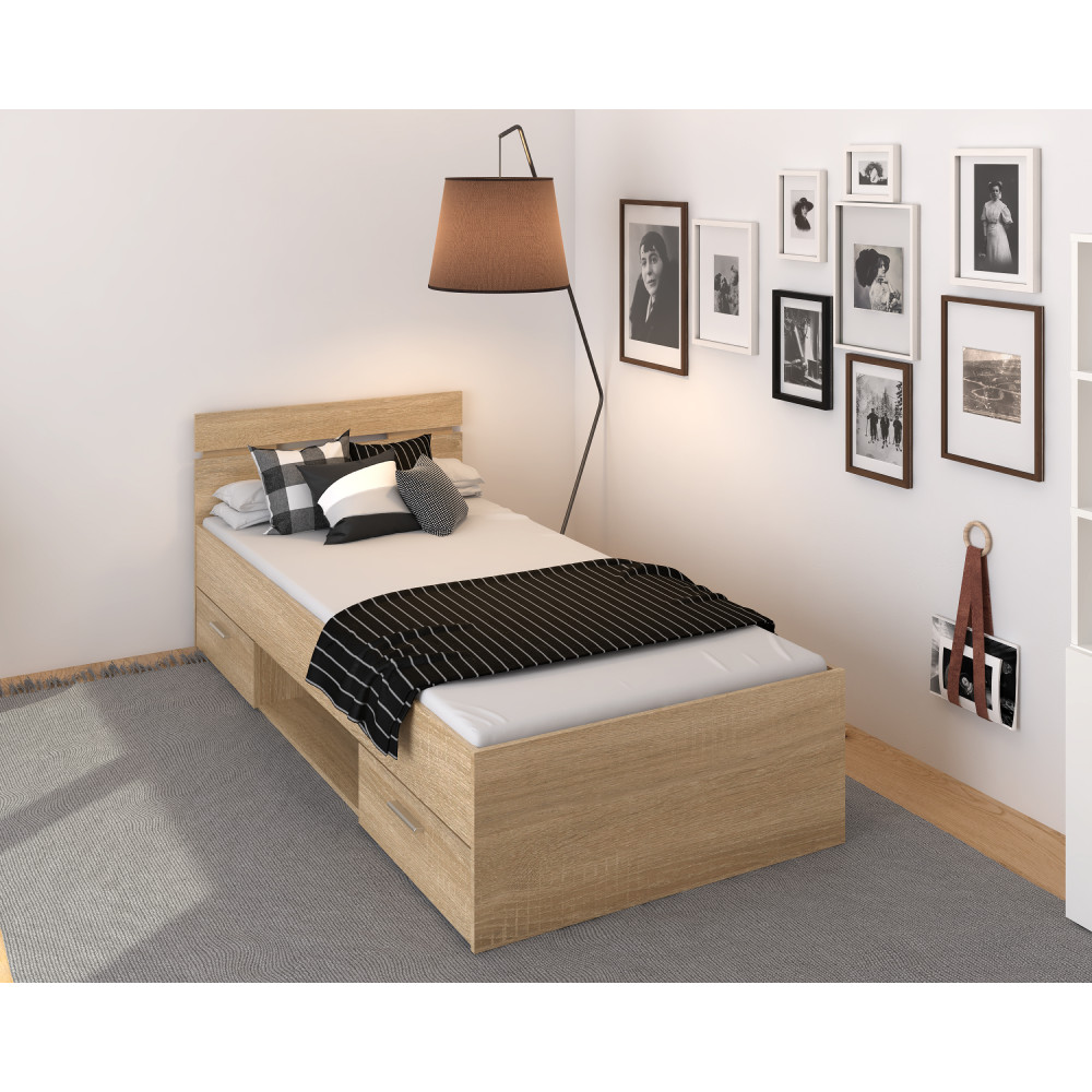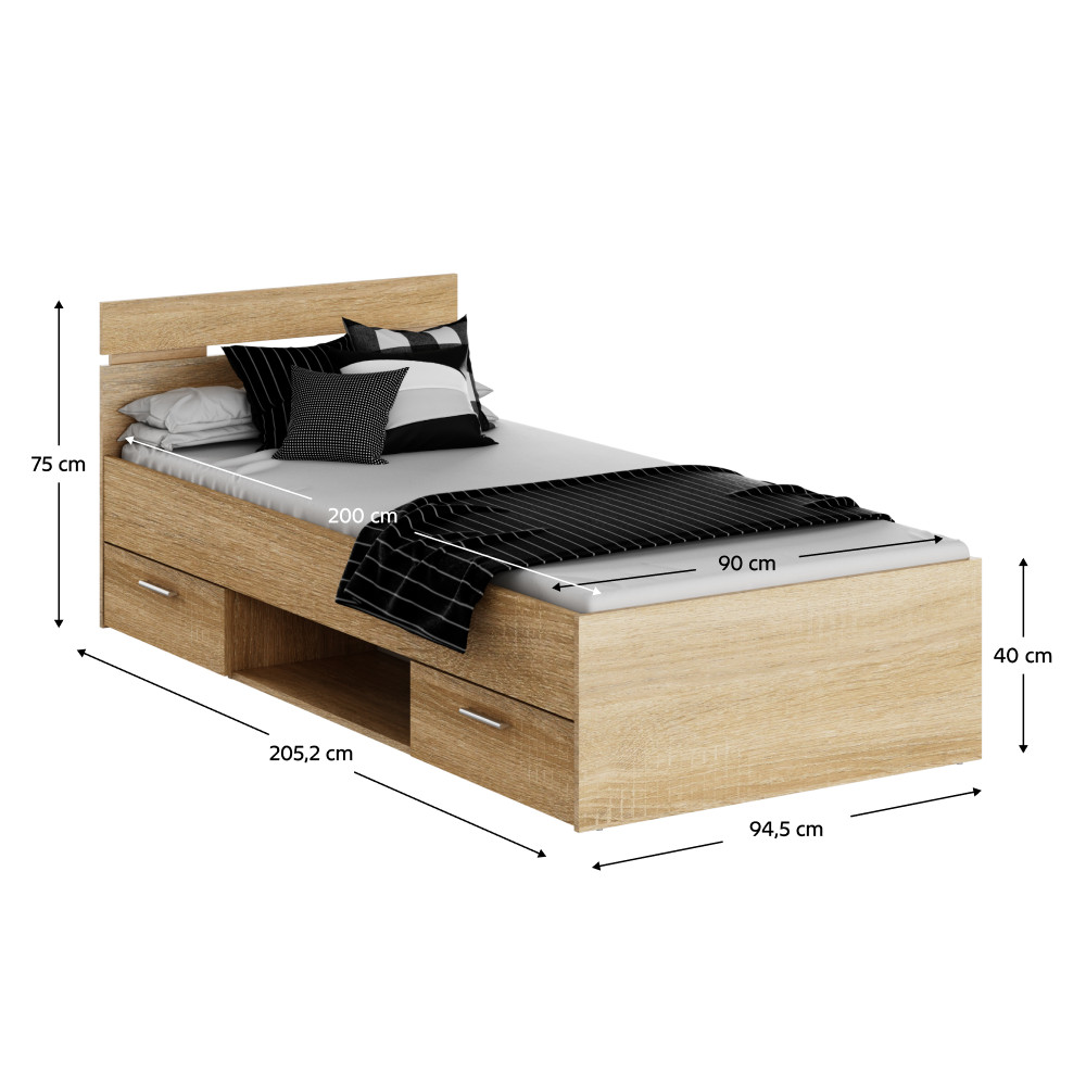 Ez a MICHIGAN NEW ágykeret ideális választás a stílusos és praktikus hálószobák számára. Laminált DTD anyagból készült, sonoma tölgyfa színben, amely természetes eleganciát sugároz. A 90x200 cm-es fekvőfelülettel rendelkező ágykeret 100 kg teherbírású, és két, mindkét oldalról szerelhető fiókkal rendelkezik, így extra tárolóhelyet biztosít.