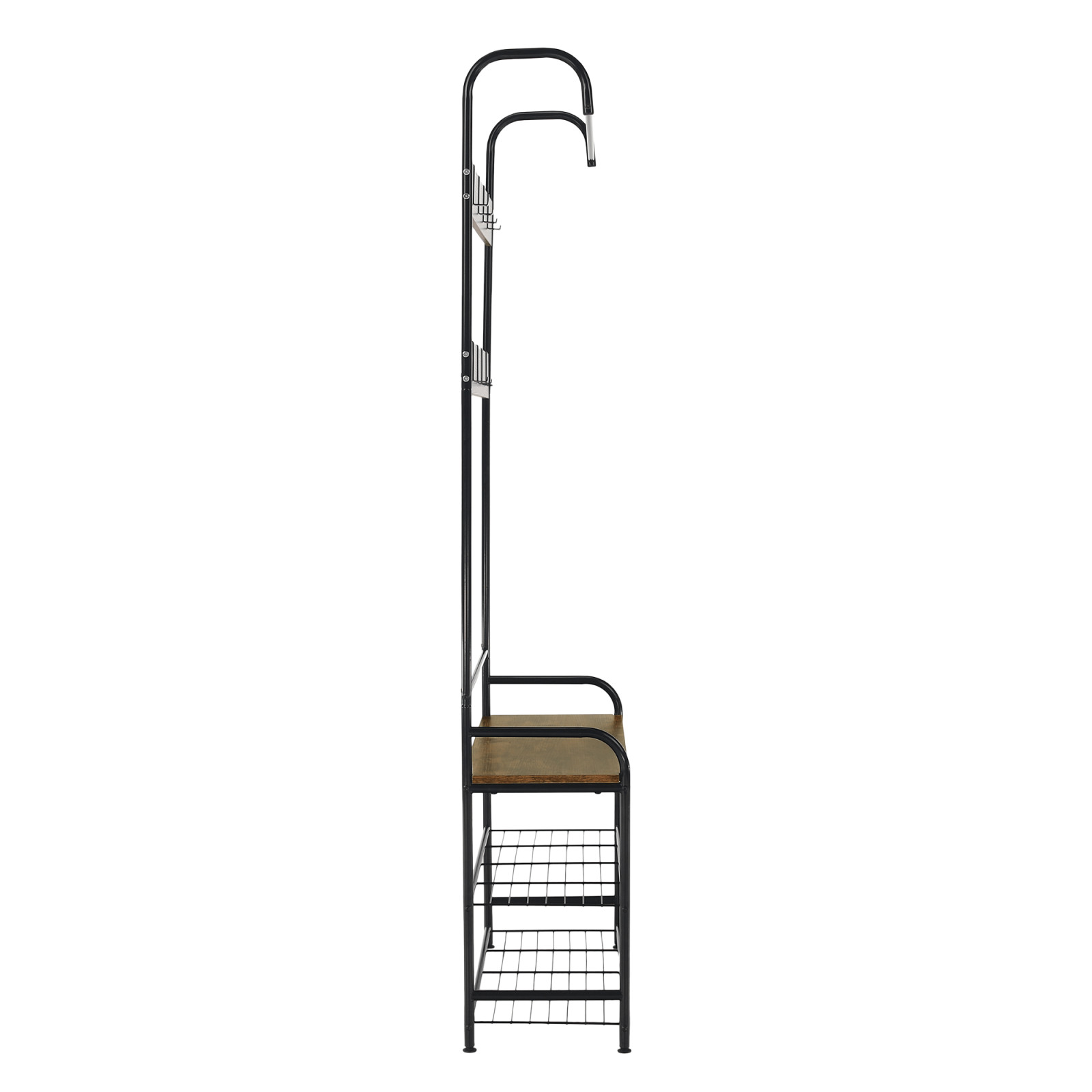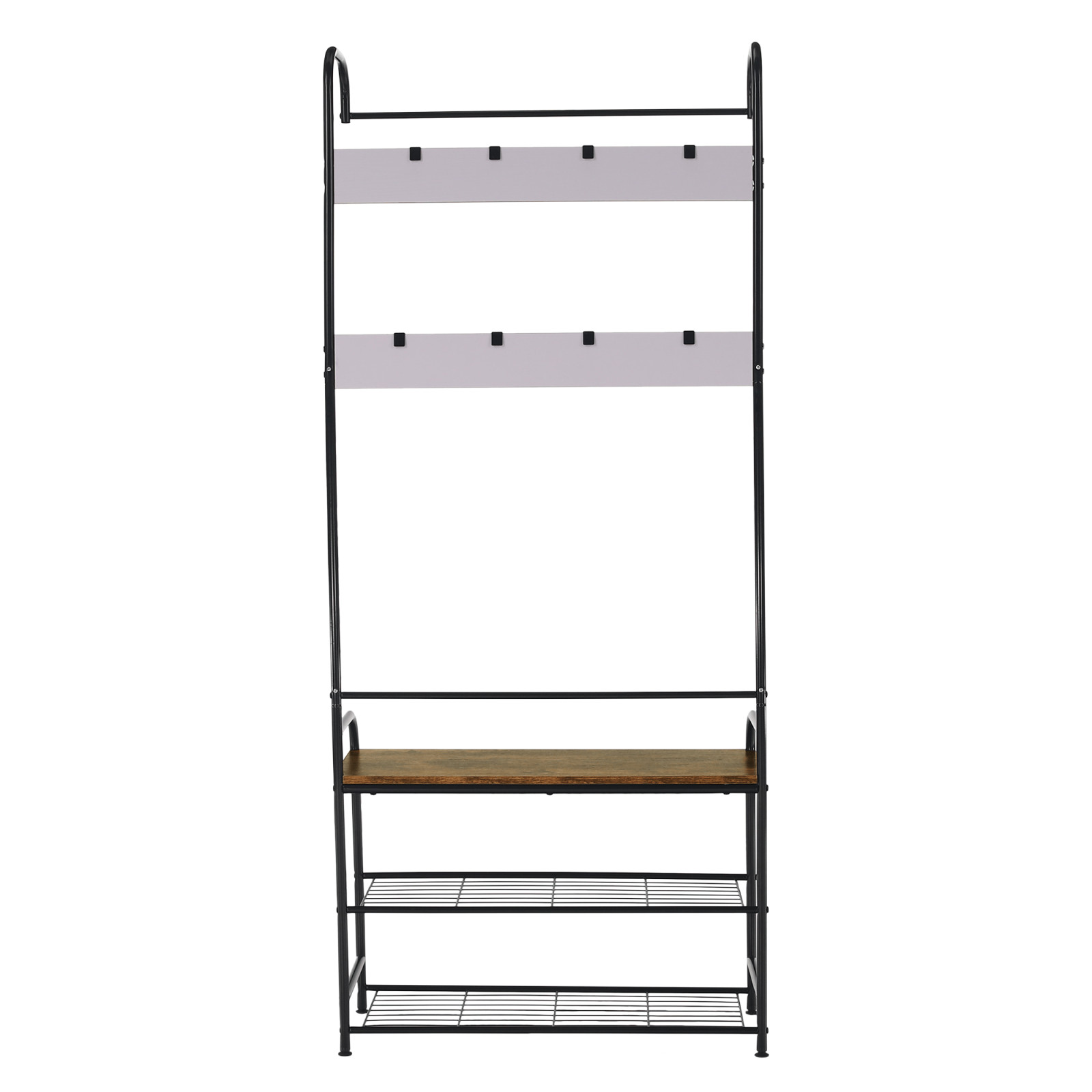 A KELAM akasztó cipőtárolóval praktikus és látványos megoldást kínál az előszoba vagy folyosó rendszerezésére. A fekete fém váz és az MDF rusztikus fa felületek harmonikus kombinációja modern, mégis otthonos hangulatot teremt, így könnyedén illeszkedik a loft, indusztriális vagy skandináv stílusú enteriőrökbe is.