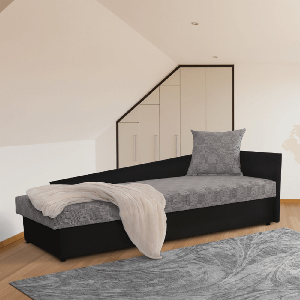 A JUDIT dívány tökéletes választás azoknak, akik stílusos és praktikus megoldást keresnek. Szövetének kopásállósága hosszú élettartamot biztosít, míg a beépített rakodótér további tárolási lehetőségeket kínál. Az elegáns fekete/szürke mintás dizájn minden modern hálószobába illik, miközben a jobbos kivitel maximális kényelmet nyújt.