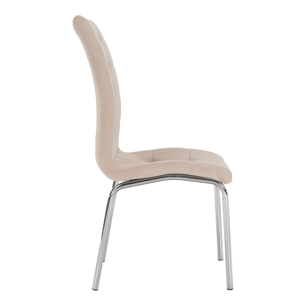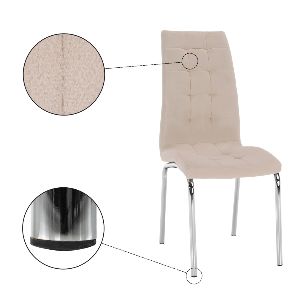 A GERDA NEW étkezőszék modern megjelenésével és kényelmes kialakításával tökéletes választás minden étkezőbe. Bézs színű Dulux Velvet szövetével eleganciát visz otthonába, míg a króm váz stabilitást és tartósságot biztosít. Ideális választás azok számára, akik stílusosan és kényelmesen szeretnék élvezni a közös étkezéseket.