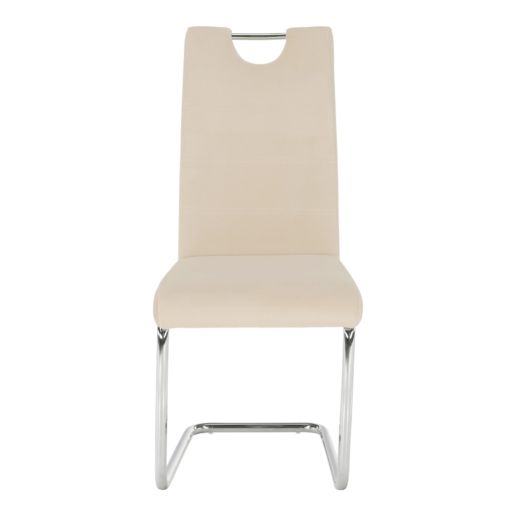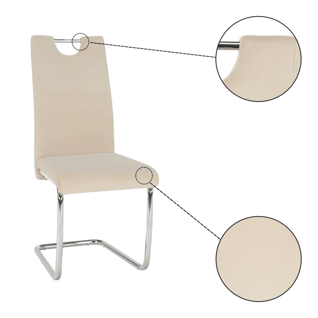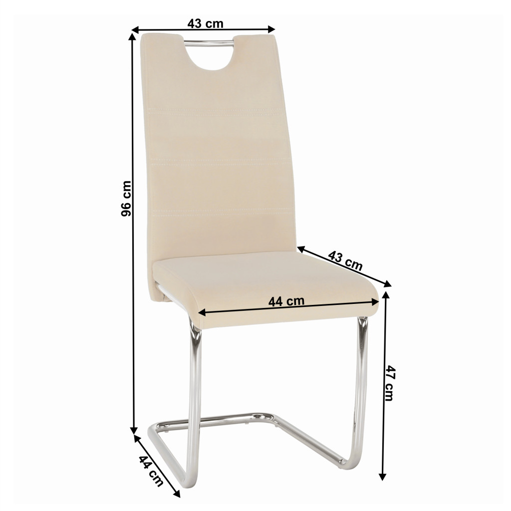 Az ABIRA NEW étkezőszék elegáns és modern megjelenést kölcsönöz minden étkezőnek. A bézs Dulux Velvet szövet finom tapintású és könnyen tisztítható, míg a világos varrások kifinomult részletességet adnak a dizájnhoz. Ideális választás azoknak, akik egyszerre keresnek kényelmet és stílust otthonukba.