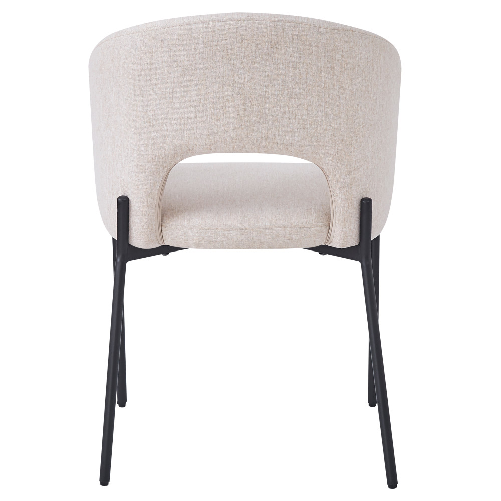 A LONKA étkezőszék tökéletes választás azoknak, akik a modern stílust és a kényelmet keresik. Bézs színű szövet kárpitozása elegáns megjelenést kölcsönöz, míg a fekete fém lábak stabilitást biztosítanak. Ideális választás bármelyik konyhába vagy étkezőbe.
