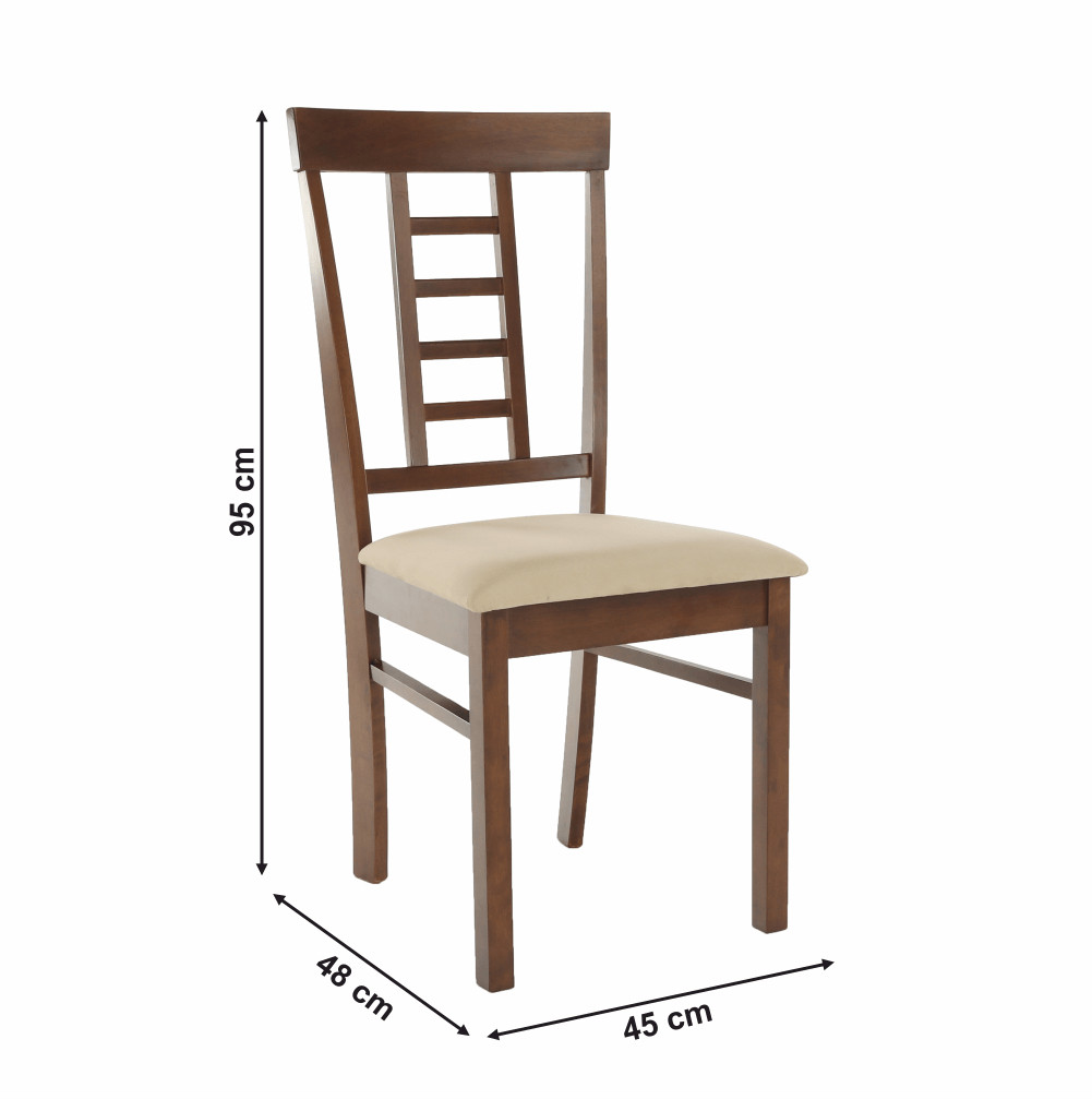 Az OLEG NEW étkezőszék elegáns dió és bézs színeivel tökéletes választás minden modern konyhába vagy étkezőbe. Kiváló minőségű fa anyagból készült, amely hosszú élettartamot biztosít, miközben a bézs kárpitozás kényelmet és stílust nyújt. Tökéletesen kombinálható különféle asztalokkal, hogy harmonikus megjelenést kölcsönözhessen otthonának.