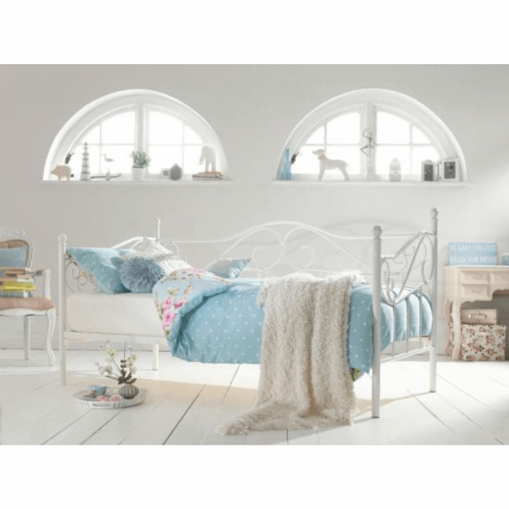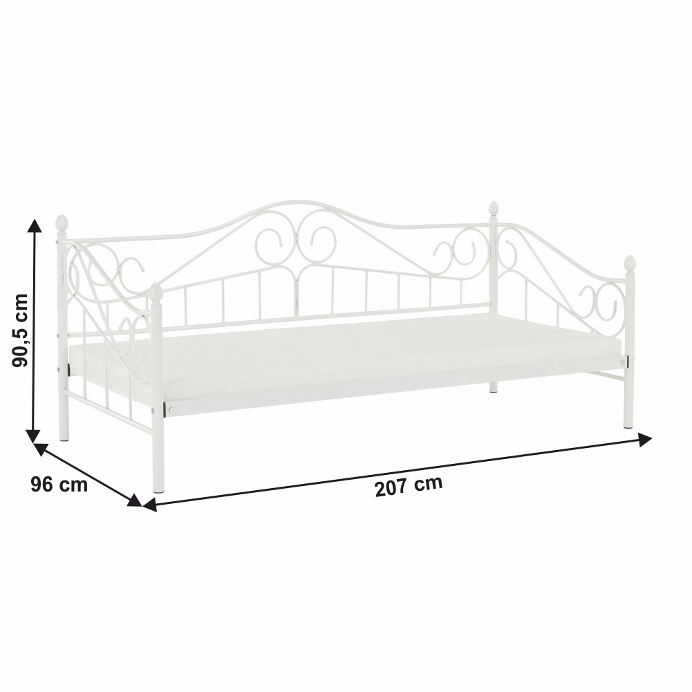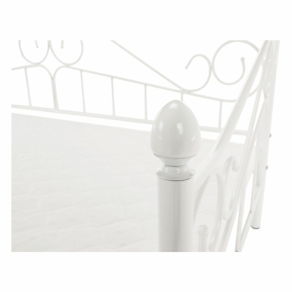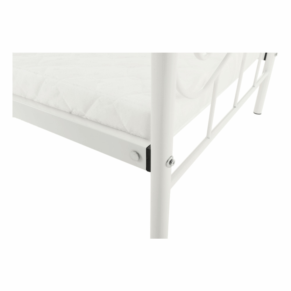A DAINA fém ágy elegáns megjelenést kölcsönöz hálószobájának. A fehér színű, 90x200 cm-es ágy masszív fém szerkezetével és stílusos dizájnjával kitűnő választás a modern otthonok számára. Az ágyhoz tartozik a fém ágyrács, de a matrac külön megvásárolható.