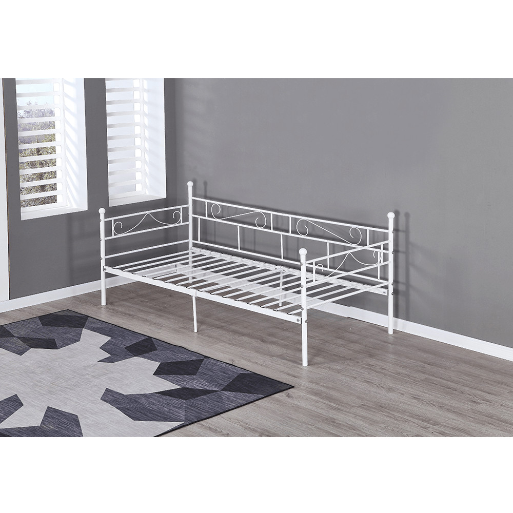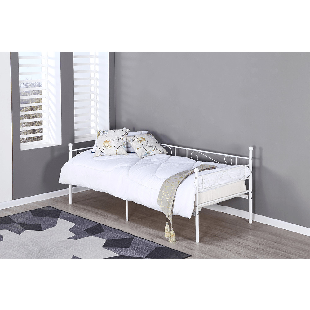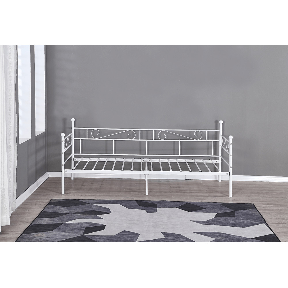 A ROZALI fém kanapé tökéletes választás, ha stílusos és praktikus megoldást keres hálószobájába. Az ágy fehér színe modern megjelenést kölcsönöz, míg a 90x200 cm-es fekvőfelület kényelmes alvást biztosít. A masszív fém szerkezet 100 kg teherbírású, így stabil és megbízható. Az ágyrács már az ágyhoz tartozik, így csak egy megfelelő matracra lesz szüksége a teljes kényelemhez.