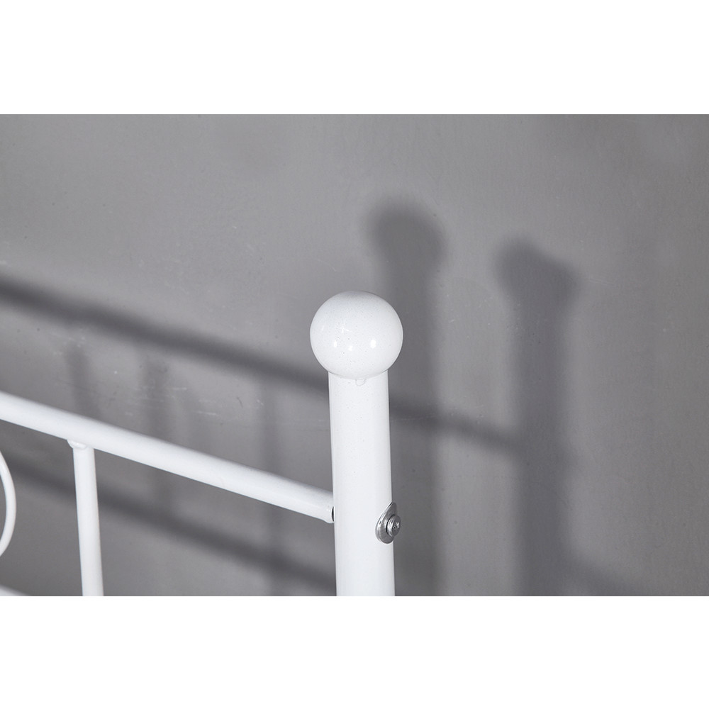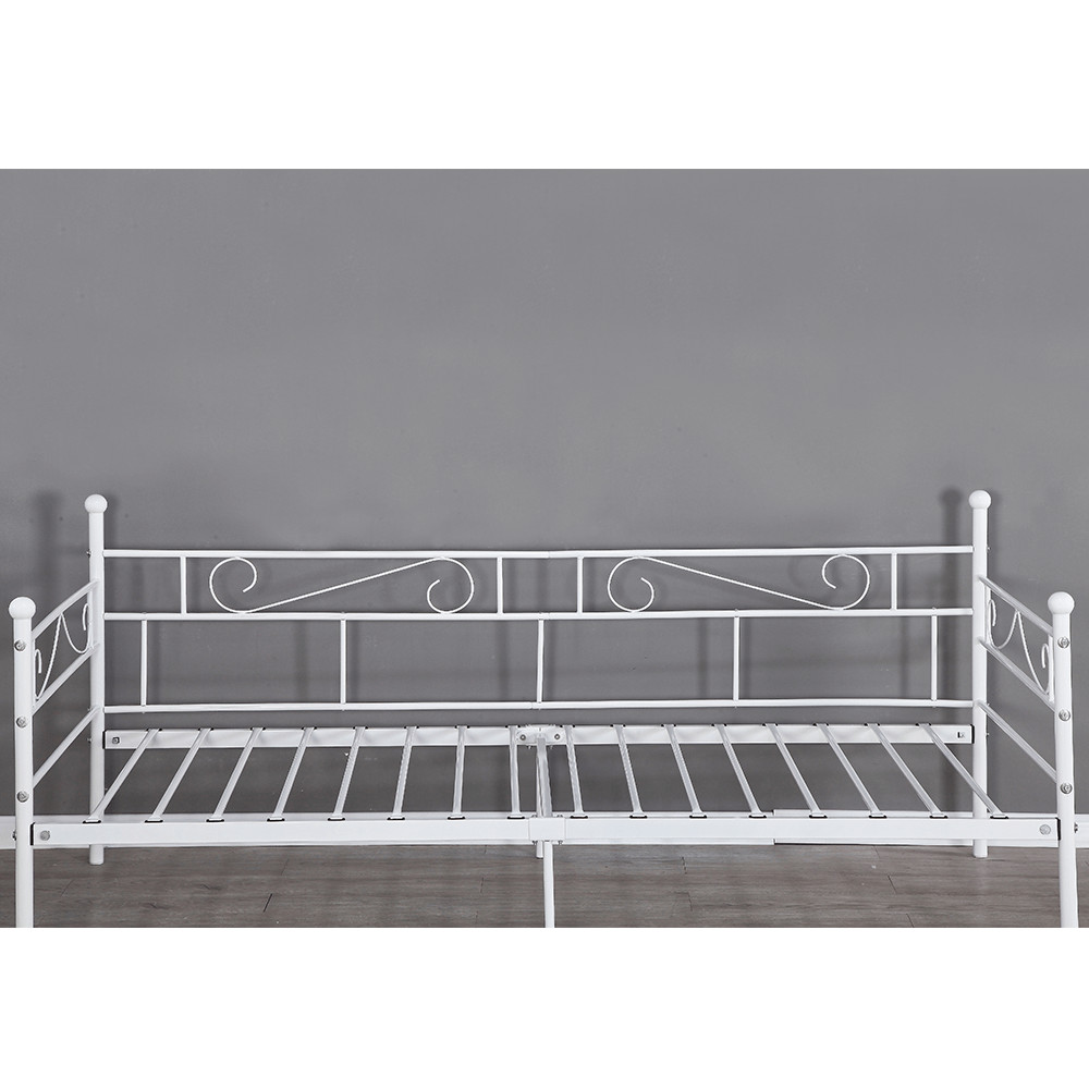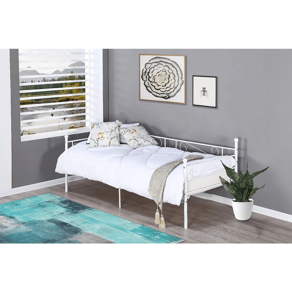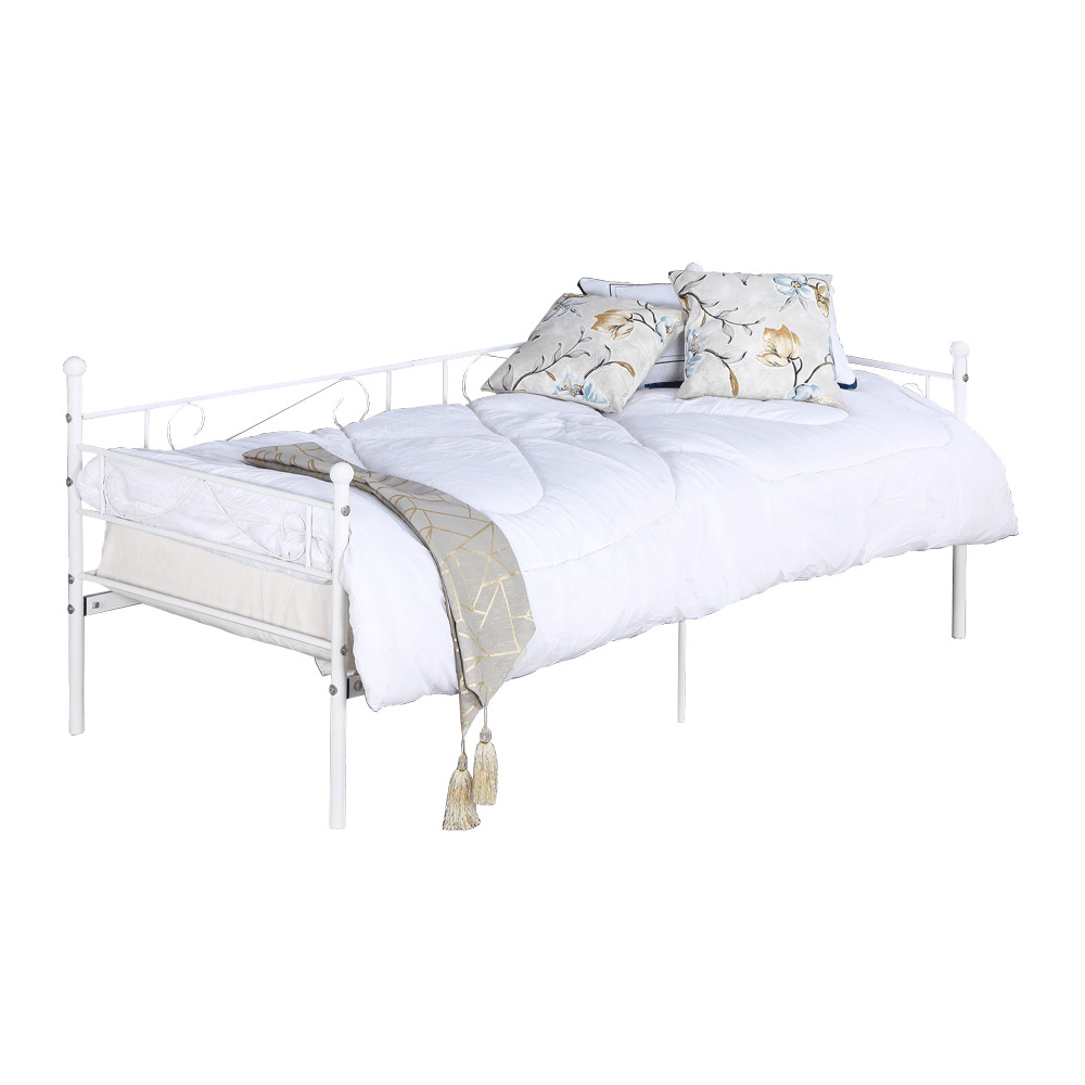 A ROZALI fém kanapé tökéletes választás, ha stílusos és praktikus megoldást keres hálószobájába. Az ágy fehér színe modern megjelenést kölcsönöz, míg a 90x200 cm-es fekvőfelület kényelmes alvást biztosít. A masszív fém szerkezet 100 kg teherbírású, így stabil és megbízható. Az ágyrács már az ágyhoz tartozik, így csak egy megfelelő matracra lesz szüksége a teljes kényelemhez.