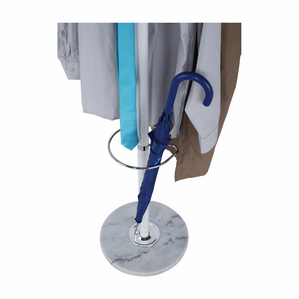 Az ELOS fehér néma szolga egy stílusos és praktikus megoldás az előszobába vagy a folyosóra. Ez az álló fogas elegáns megjelenésével és masszív kialakításával ideális választás, ha rendezetten szeretné tartani kabátjait és kiegészítőit.