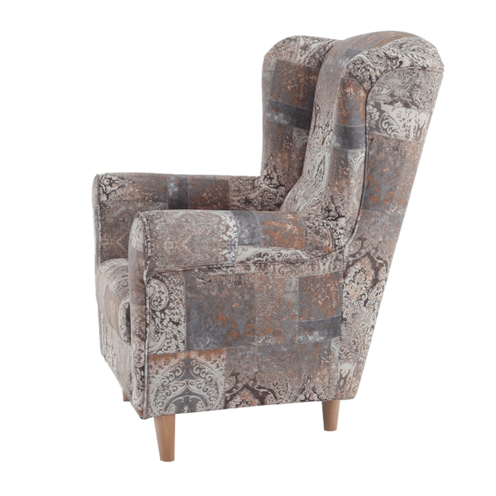A CHARLOT füles fotel vintage barna szövetkárpitozással egy elegáns és kényelmes választás nappalijába. A klasszikus formatervezésű fotel magas háttámlája és puha párnázása maximális kényelmet nyújt, míg a masszív fa lábak stabilitást biztosítanak. Ideális pihenésre és olvasásra.