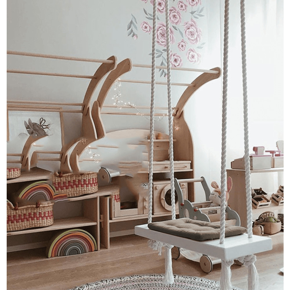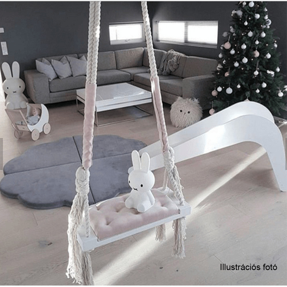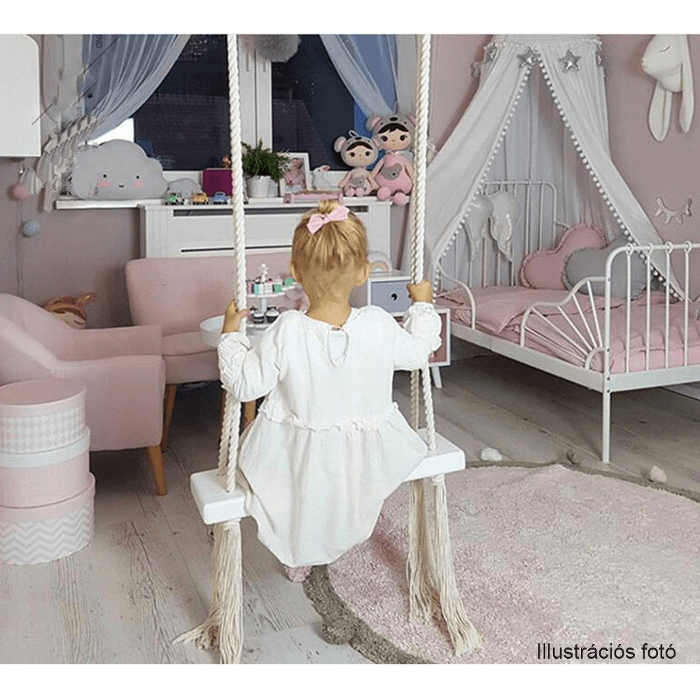 A SVING gyerek hinta tökéletes választás minden gyerekszobába vagy kertbe. Modern fehér és szürke színekben pompázik, így könnyedén illik bármilyen környezetbe. A hinta kényelmes ülőfelülete és erős tartószíjai biztosítják a biztonságos és szórakoztató hintázást a kicsik számára. Ideális választás, hogy a gyerekek kreatívan és aktívan tölthessék idejüket.