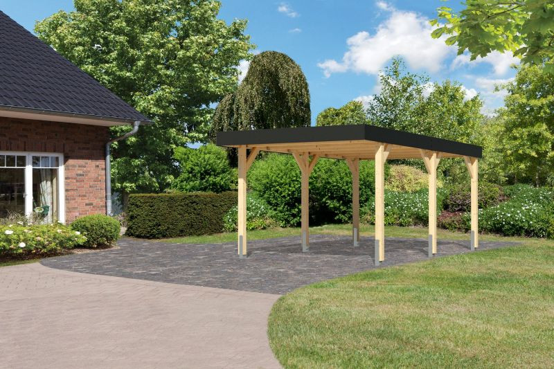 Védje autóját megbízhatóan és elegánsan a Karibu laminált fa autóbeállóval, amely prémium minőségű anyaghasználatával és modern megjelenésével hosszú távú megoldást kínál. A masszív, 12 x 12 cm-es tömör laminált fa oszlopok rendkívül stabil és időtálló szerkezetet biztosítanak, így a kocsibeálló akár évtizedeken át szolgálja járműve védelmét.