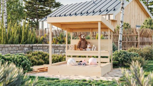 Adj gyermeke játszóterének egy csipetnyi északi természetet ezzel az esztétikus és funkcionális Karibu fedett homokozóval, ahol a játékidő minden alkalommal különleges élménnyé válik.