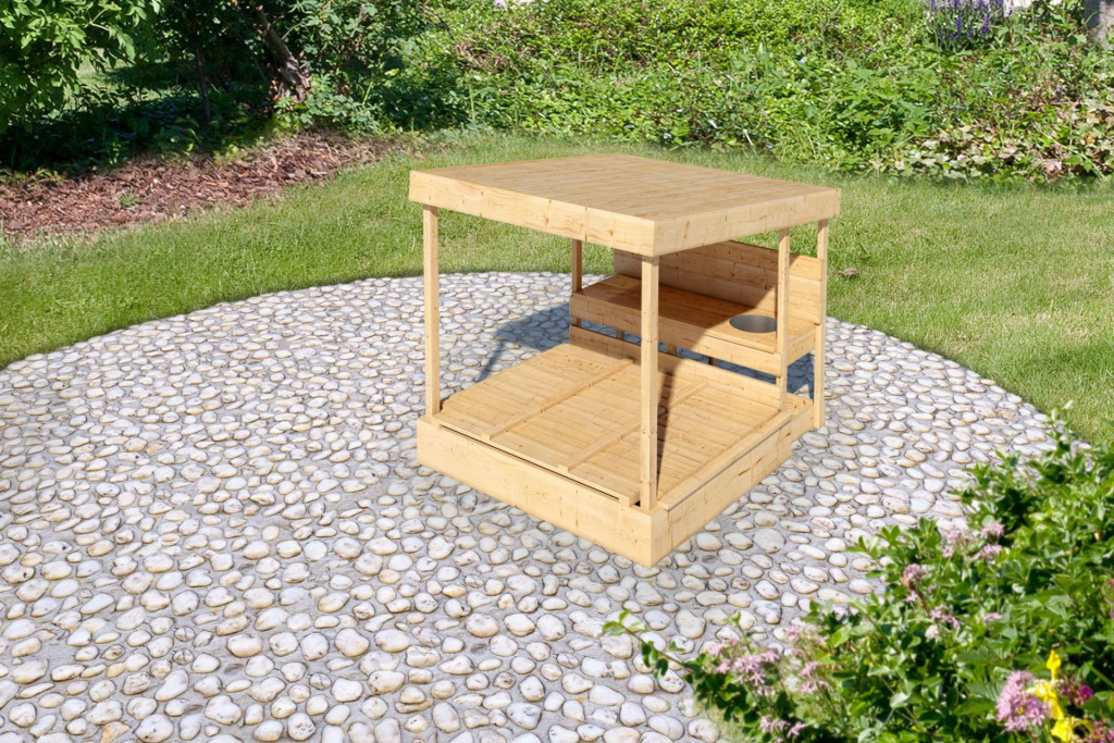 Akár homokvár építésről, „főzésről” a vályogkonyhában vagy közös játékról van szó, ez a fedett homokozó elősegíti a kreatív fejlődést, a motoros készségek erősítését és a társas játékot. Valódi kis paradicsom a kíváncsi elmék számára.