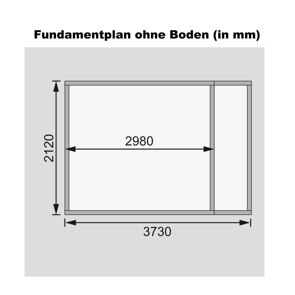 Karibu Retola 5. Lapostetős nagyméretű kerti ház beépített oldalsó tárolóval, natúr fából 377 cm x 217 cm