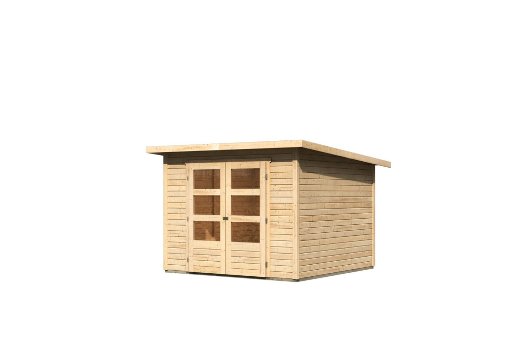 Karibu Stockach 4 kerti ház / kerti tároló – modern és praktikus megoldás a kertben A Karibu Stockach 4 kerti ház / kerti tároló stílusos és praktikus megoldást kínál mindazok számára, akik rendezett, esztétikus és jól kihasználható tárolóhelyet szeretnének kialakítani kertjükben. Modern megjelenésének és letisztult formavilágának köszönhetően harmonikusan illeszkedik a kert környezetébe, miközben ideális helyet biztosít kerti szerszámok, bútorok vagy egyéb kerti eszközök tárolására. Modern kialakítás és stabil szerkezet A 19 mm vastag falpanelekből készült Karibu Stockach 4 kerti ház masszív és tartós szerkezetet biztosít. A modern tetőszerkezet 7,8 m² tetőfelülettel rendelkezik, amely elegáns megjelenést kölcsönöz a kerti építménynek. Egyszerű, letisztult formája lehetővé teszi, hogy a kerti ház természetesen illeszkedjen a kert stílusához és környezetéhez. A szerkezet északi lucfenyőből készül, amely természetes és tartós alapanyag a kerti építményeknél. A fa természetes felülete kellemes, természetközeli megjelenést biztosít, és lehetőséget ad arra, hogy a kerti házat saját ízlésének megfelelően kezelje vagy színezze. Gyors és egyszerű összeszerelés A Karibu Stockach kerti tároló praktikus dugaszolós és csavaros szerelési rendszerrel készül, amely gyors és egyszerű telepítést tesz lehetővé. Ennek köszönhetően a kerti ház összeállítása különösebb barkácsolási tapasztalat nélkül is könnyen megoldható. Több színváltozat – a kert stílusához igazítva A kerti ház több modern színváltozatban érhető el, hogy minden kerthez és stílushoz tökéletesen illeszkedjen: terra szürke natúr fa Így a Karibu Stockach 4 kerti ház / tároló könnyen a kert hangulatához igazítható, és egyedi megjelenést kölcsönöz az udvarnak. Világos belső tér és kényelmes bejárat A kerti ház belsejébe egy praktikus dupla ajtón keresztül lehet belépni. Az ajtók mindegyike három ablakrésszel rendelkezik, amelyek sok természetes fényt engednek be a belső térbe. Ennek köszönhetően a belső tér világos, átlátható és könnyen használható. A bejárati ajtó biztonsági zárral van ellátva, amely növeli a tárolt eszközök és kerti felszerelések biztonságát. Megjegyzés:A padlóburkolat és a tetőfedés opcionális extraként rendelhető, ezek nem tartoznak az alapcsomag részéhez.