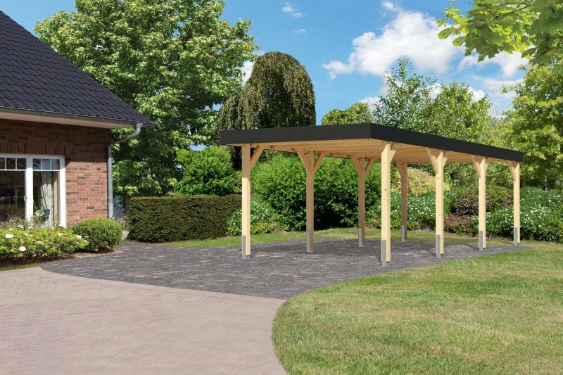 Karibu Nordic 2. egyállásos autóbeálló, fedett kocsibeálló, laminált fa, 312,5 cm × 724 cm