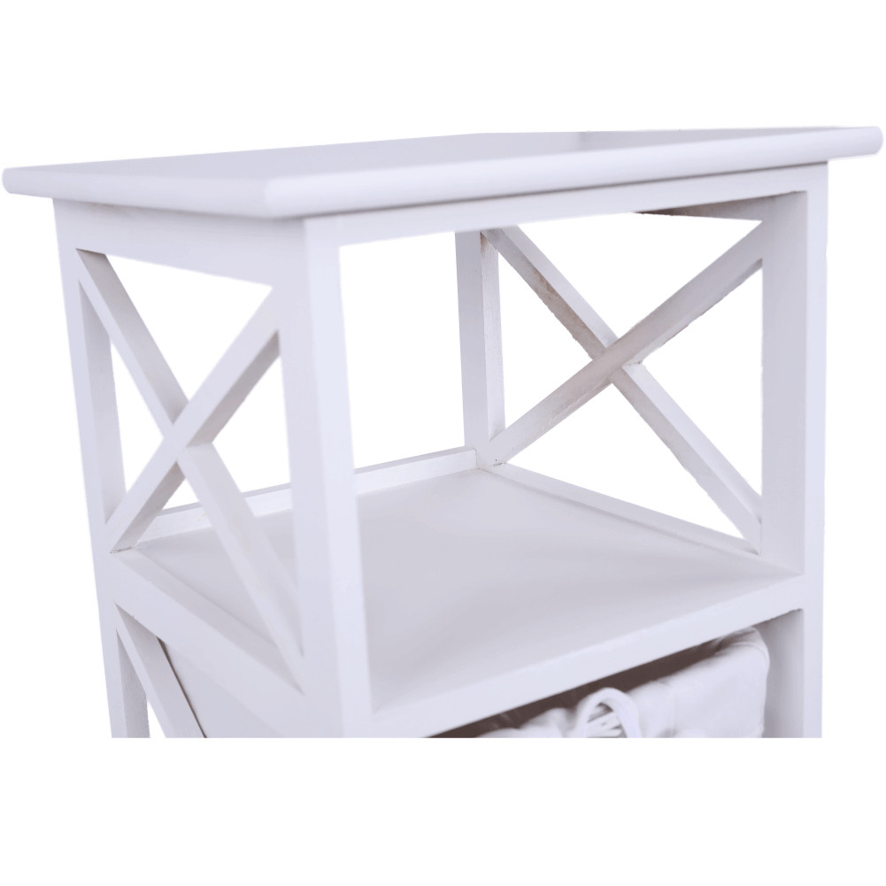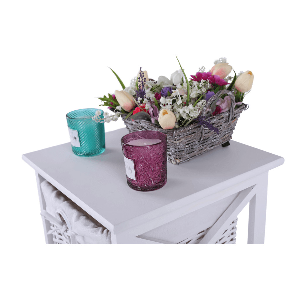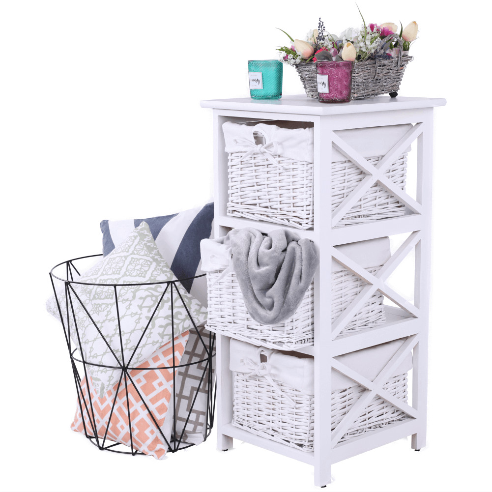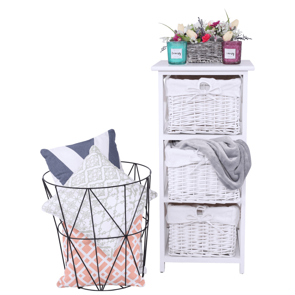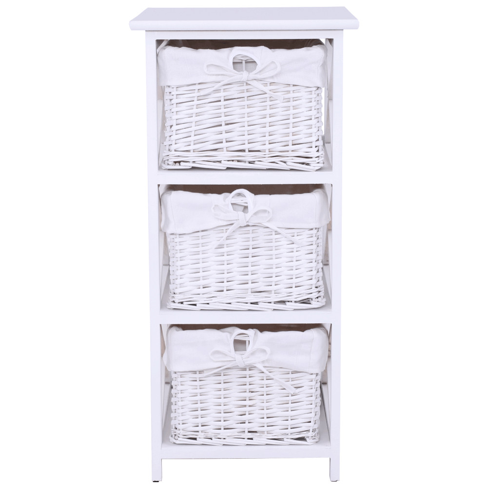 A RAFAELLO 3 komód ideális választás, ha stílusos és praktikus tárolási megoldást keres hálószobájába. A fehér szín elegáns megjelenést kölcsönöz, míg a fa, vesszőfonás és szövet kombinációja biztosítja a tartósságot és az esztétikát. A három kosár bőséges helyet kínál a mindennapi tárgyak rendezett tárolására.