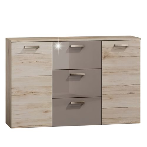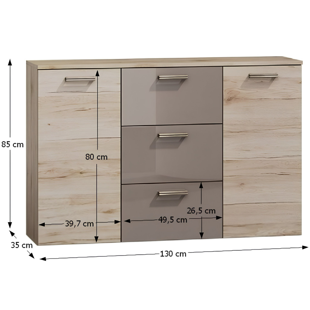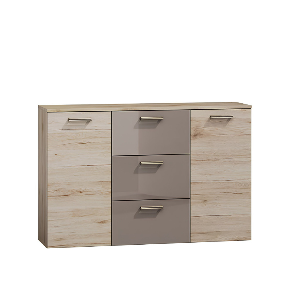 Ez a modern stílusú komód, a san marino és latte magasfényű színek elegáns kombinációjával, bármely hálószoba tökéletes kiegészítője. Laminált DTD anyagból készült, így tartós és könnyen tisztítható. Kompakt méretei (130x85x35 cm) lehetővé teszik, hogy kisebb terekben is elférjen, miközben bőséges tárolókapacitást kínál.