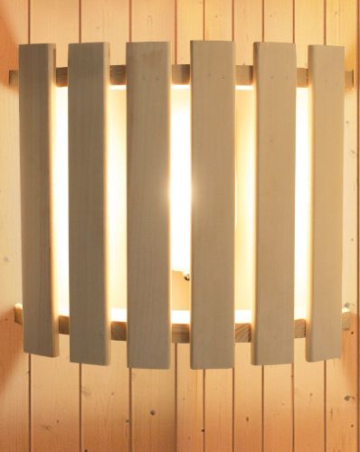 A tökéletes wellness oázishoz mindössze a megfelelő fényre van szükséged a szaunakabinodban? Akkor a Modern szauna lámpa mindenképpen a megfelelő választás. Nem csak a gyönyörű bútorok vagy a szauna melege segít ellazulni. Egy kellemes fényforrás is hozzájárul a jó közérzethez. A fény ne legyen túl erős, hogy otthonos, nyugodt hangulatot teremtsen. Másrészt ne legyen túl sötét sem, hogy ne rontsa a hangulatot. A Modern szauna lámpa tökéletes egyensúlyt teremt. A szauna lámpa egy tömör fa ernyőből áll, amely tökéletesen illeszkedik a szauna belsejébe. A fa ernyők közötti rések elosztják a fényt az egész szaunakabinban, meleg hangulatot teremtve. A lámpa mérete 33 x 9 x 28 cm (H x Sz x M), és tökéletesen illeszkedik bármelyik Karibu szaunába. A szauna sarkába szerelve nem foglal sok helyet. Még egyenesen ülve sem zavaró a szaunában a szauna lámpa. Pihenj tökéletes fényviszonyok között a Modern szauna lámpával.