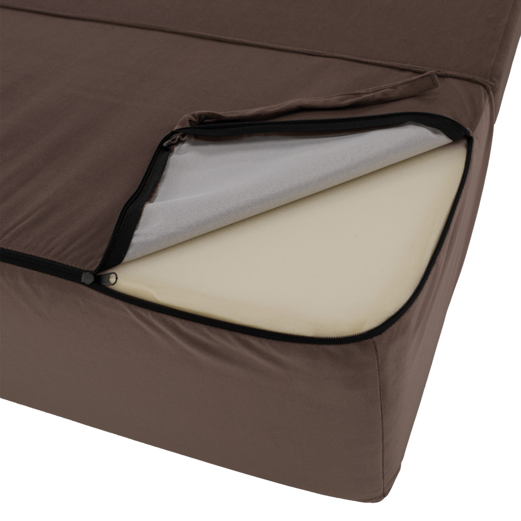 Az Összecsukható matrac/fotel VEDIS egy praktikus 2 az 1-ben megoldás, amely ideális kis helyiségekbe vagy vendégszobákba. Kompakt méretű, könnyen átalakítható fotelből kényelmes ággyá. Barna taupe színével és modern kialakításával bármely szobába illeszkedik. A levehető és mosható huzat praktikus, a tartós poliuretán habszivacs pedig hosszú élettartamot biztosít.