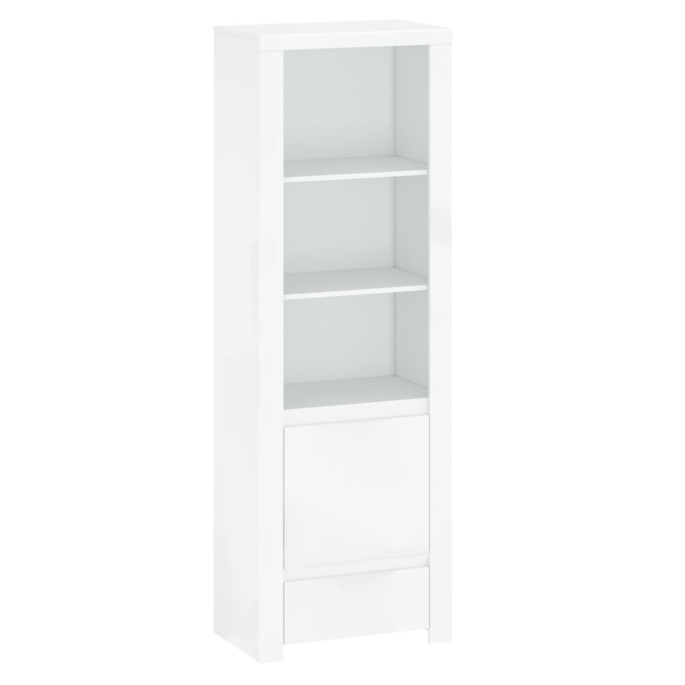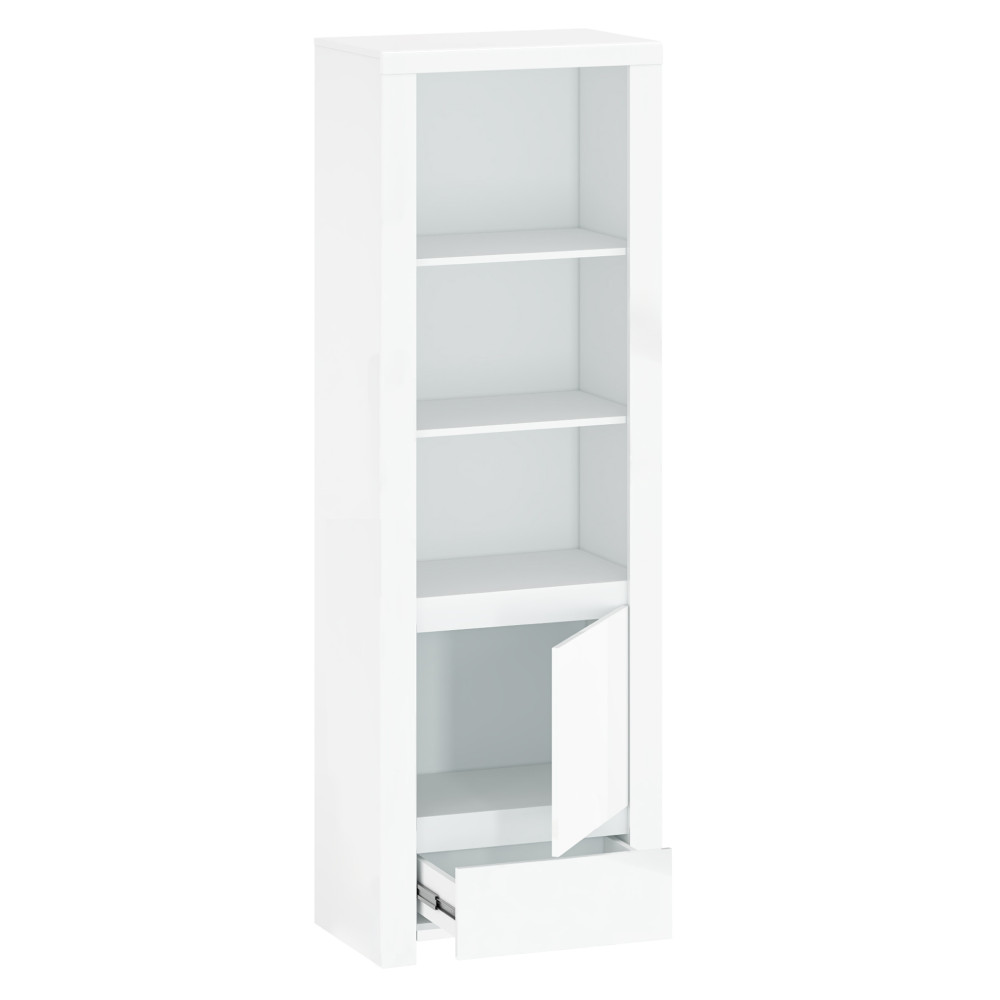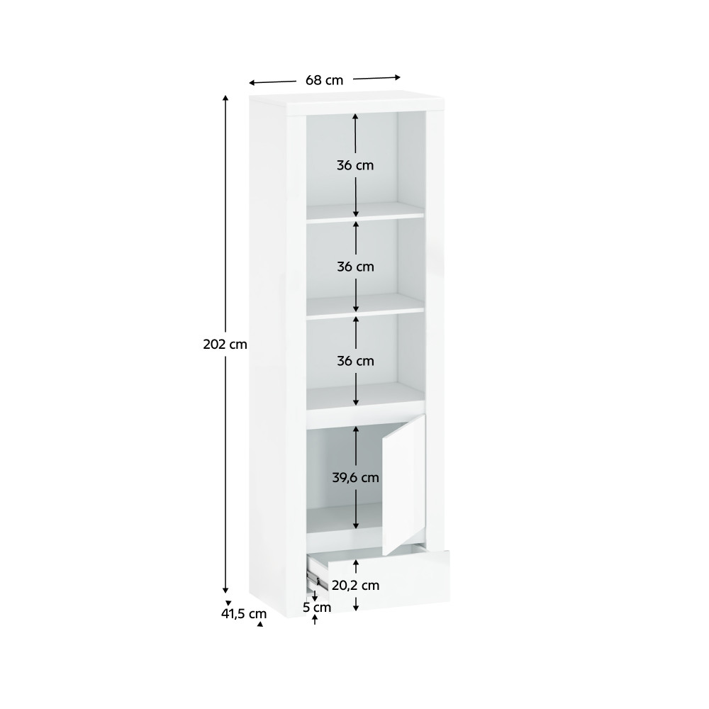 A LINDY fehér fényes polcállvány az otthoni tárolás elegáns megoldása. Egyedülálló 1 ajtós, 1 polcos kialakítása lehetővé teszi a könyvek, dekorációk és egyéb tárgyak stílusos elhelyezését. Tökéletes választás nappaliba, ahol a modern megjelenés és a praktikum találkozik.
