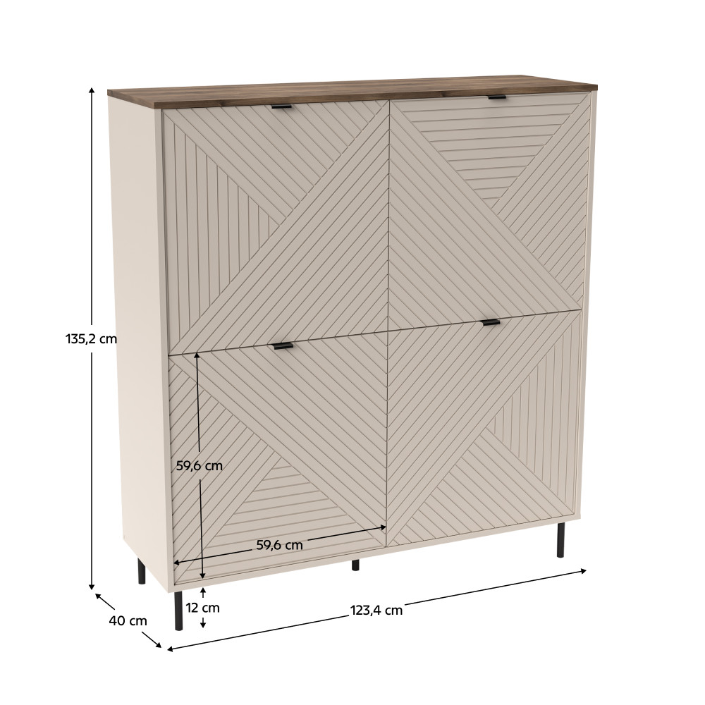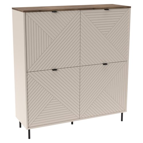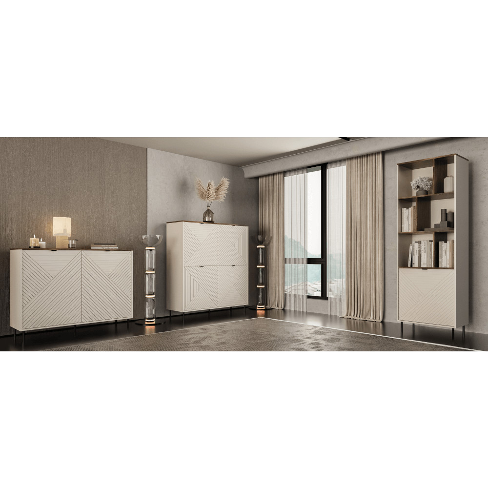 Ez a kasmír és castello tölgy kombinációjú polcos szekrény eleganciát és funkcionalitást kölcsönöz otthonának. Az EYCO 4D modell letisztult dizájnjával és tágas tárolóhelyeivel ideális választás nappalijába.
