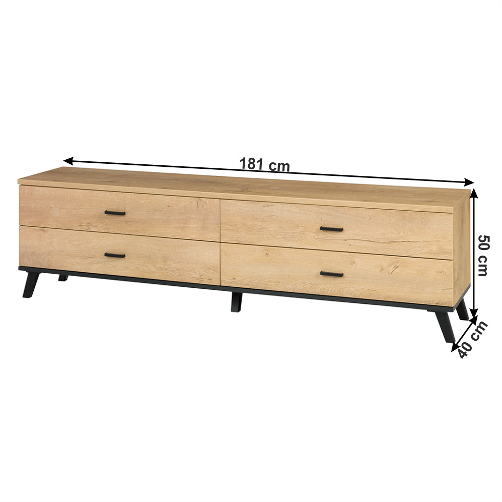 A SIRAN TYP 6 RTV asztal a nappali bútorkollekció elengedhetetlen darabja. Tölgyfa lefkas és fekete színkombinációja modern és elegáns megjelenést kölcsönöz otthonának. Praktikus kialakítása lehetővé teszi a médiaeszközök kényelmes elhelyezését és tárolását, miközben stílusos kiegészítője marad a szobának.