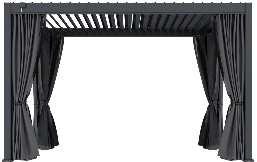 A pergola kompatibilis függöny- és szúnyogháló szettel (ZMECO043 cikkszám), amely tovább növeli a komfortérzetet, a privát szférát és a védelmet.