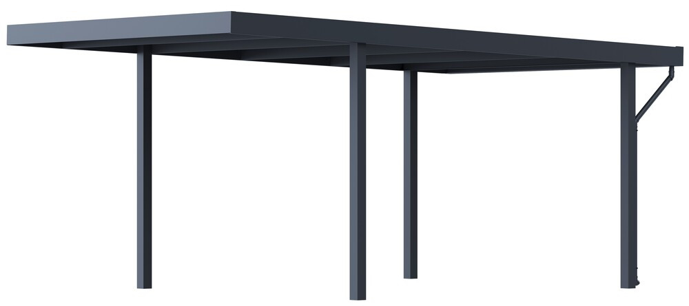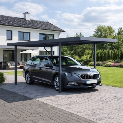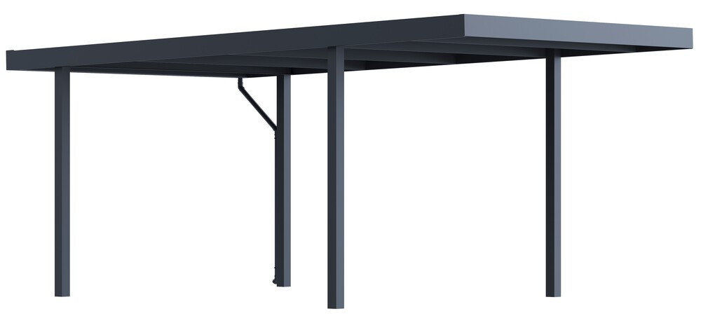 A szerkezet kiváló minőségű, porszórt acélból készül, antracit színben (RAL 7016), matt felülettel. A 96×96 mm-es oszlopok és az erős acélprofilok stabilitást és hosszú élettartamot garantálnak, miközben nincs szükség falhoz történő rögzítésre. A letisztult kialakításnak köszönhetően az autóbeálló modern környezetbe és kortárs épületekhez is tökéletesen illeszkedik.