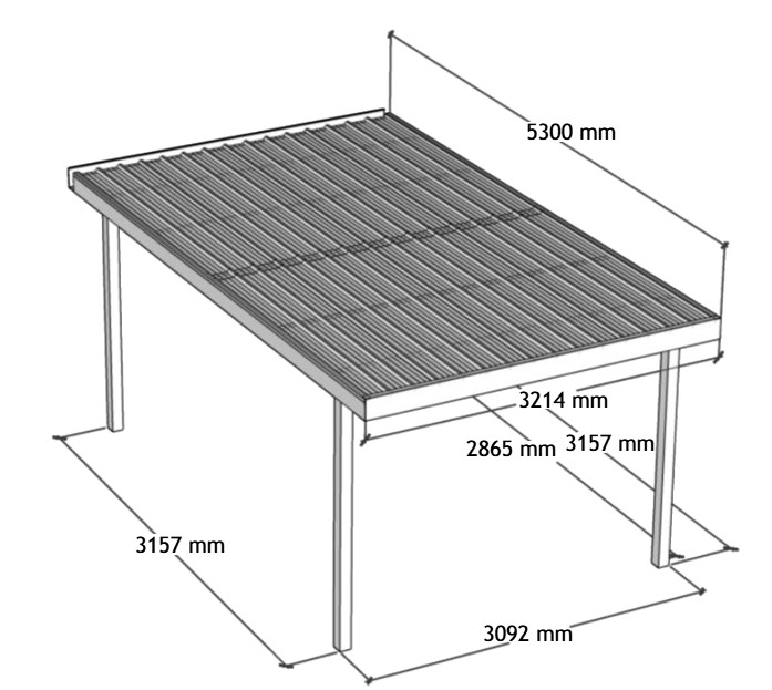 A tetőszerkezet 25 mm vastag acél panelekből áll, amelyek akár 50 kg/m² terhelést is elbírnak. Ez megbízható védelmet nyújt eső, hó és napsugárzás ellen, ugyanakkor nagyobb hóterhelés esetén a hó rendszeres eltávolítása javasolt. A panelek mind felülről, mind alulról antracit kivitelűek, így egységes megjelenést biztosítanak.