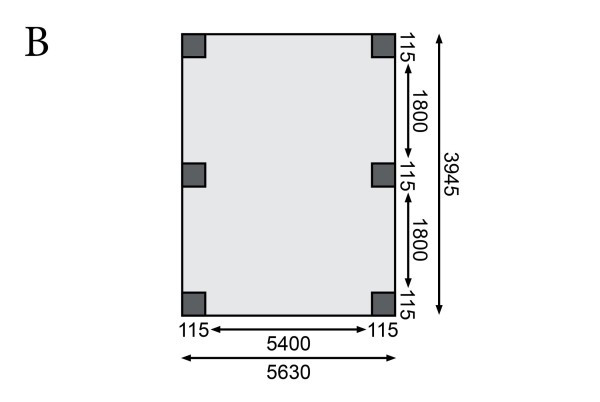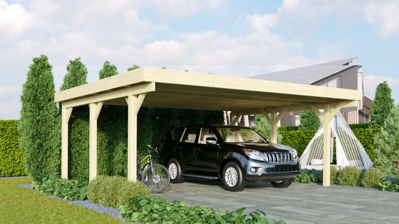 Karibu Classic 1. dupla fa autóbeálló, fedett kocsibeálló, 0,5 mm-es acél tetőfedő lemezzel,563 cm × 394,5 cm