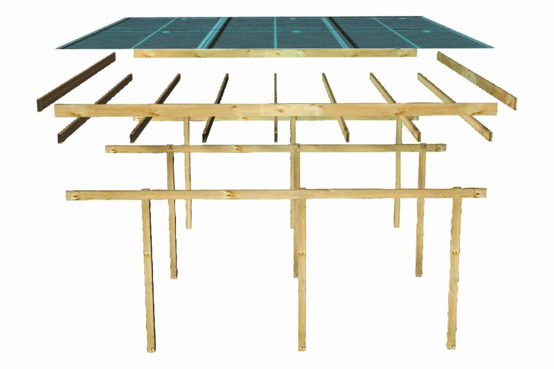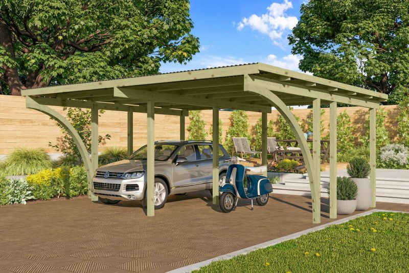 Karibu Basic 1. dupla fa autóbeálló, fedett kocsibeálló, bejárati boltívvel, 527 cm x 387 cm